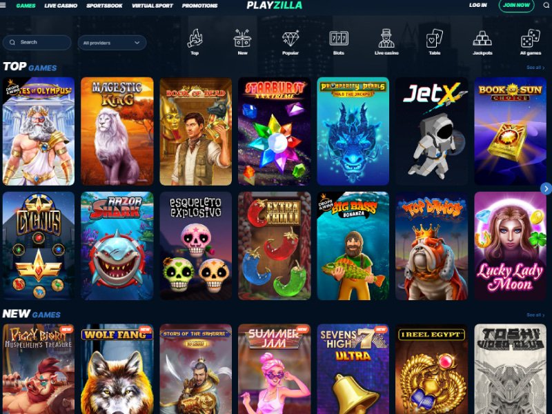 Le casino en ligne Playzilla possède une ludothèque passionnante composée de plus de 3,000 jeux différents qui sont conçus par plus de 45 développeurs de logiciels. Nous y avons trouvé les noms de plusieurs fournisseurs majeurs du marché tels que NetEnt, Quickspin, Microgaming, Yggdrasil, Betsoft, Evolution Gaming, Pragmatic Play, iSoftbet et Big Time Gaming. Le casino Playzilla collabore également avec certains des éditeurs à plus petites échelles, mais toujours respectés tels que Spinomenal, Vivo Gaming, EGT, Nolimit City, Endophina, Wazdan, Leap, Amatic, Gamomat et bien d'autres. Comme sur la plupart des sites de jeux d'argent, vous pouvez filtrer les jeux par fournisseurs ou effectuer l'exploration en utilisant la barre de recherche disponible sur Playzilla casino.