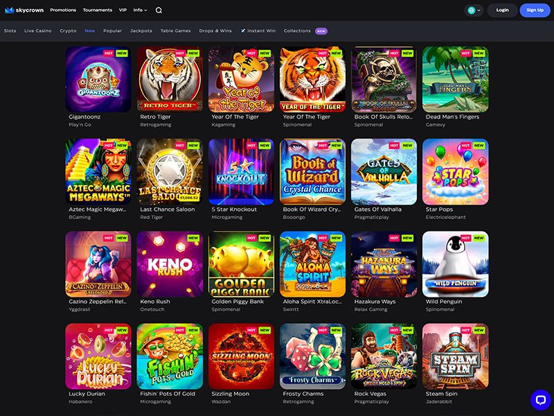 Sur Skycrown Casino, il y a +7,000 machines à sous réparties par catégories. Dans la catégorie « hits », vous trouverez la meilleure sélection de slots avec des titres comme Gates of Olympus signé Pragmatic Play, Cash Pig, Pushy cats de Yggdrasil. Vous y trouverez des machines à sous tels que Mötley Crüe signé Play'n Go, Wolf Fang de Spinomenal. Le site propose aussi d'autres catégories de slots telles que « Megaways », « Jackpots », « Achat de bonus » et « Drop and Win » dans son catalogue de jeux.